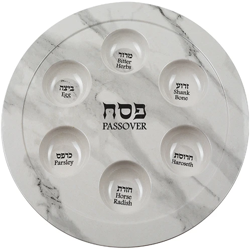 קערת פסח במבוק דמוי שיש לבן 35 ס"מ