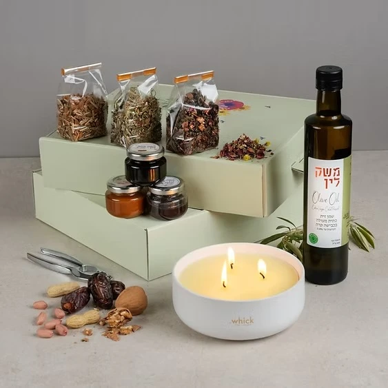 מארז שמן זית חרוסת ממרחים ותה לפסח
