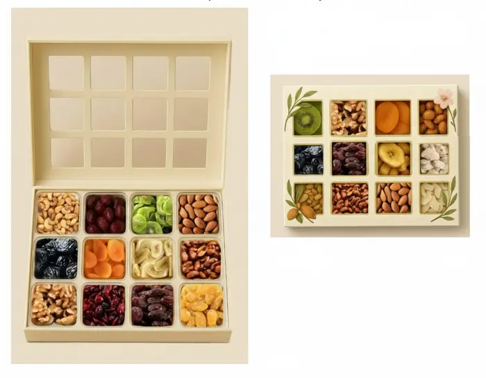 מארז ריבועים-12קופסאות עם פירות יבשים משקל של כ1.3קילו