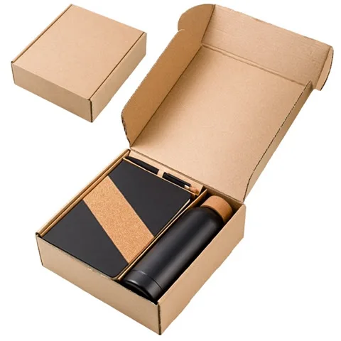 בקבוק תרמי מחברת דמוי עור ועט מתכת משולבים עם שעם