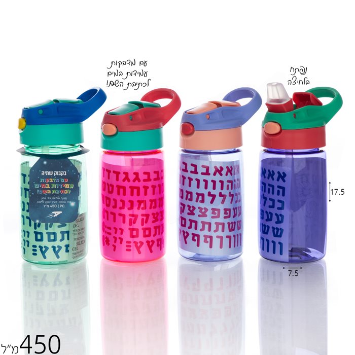 בקבוק לחיצה 450 מ”ל כולל מדבקות עמידות מים לכתיבת שם.